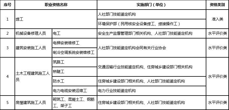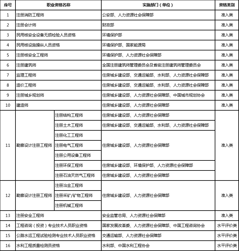 涉及工程建设领域职业资格共21项,建造师、建筑师、造价工程师等都在其列,专业技术人员职业资格16项,技能人员职业资格5项。