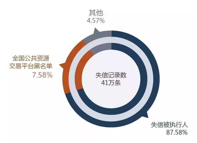 小微企业现存的41.8万失信黑名单记录主要集中在失信被执行人、全国公共资源交易失信两类,占比总计达95.16%。