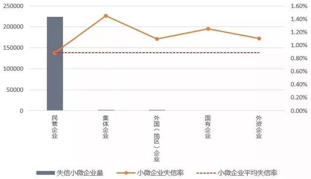 即民营企业中,小微企业的信用状况要好于整体水平。国有企业、集体企业、外资企业中,小微企业的信用状况相对较差。