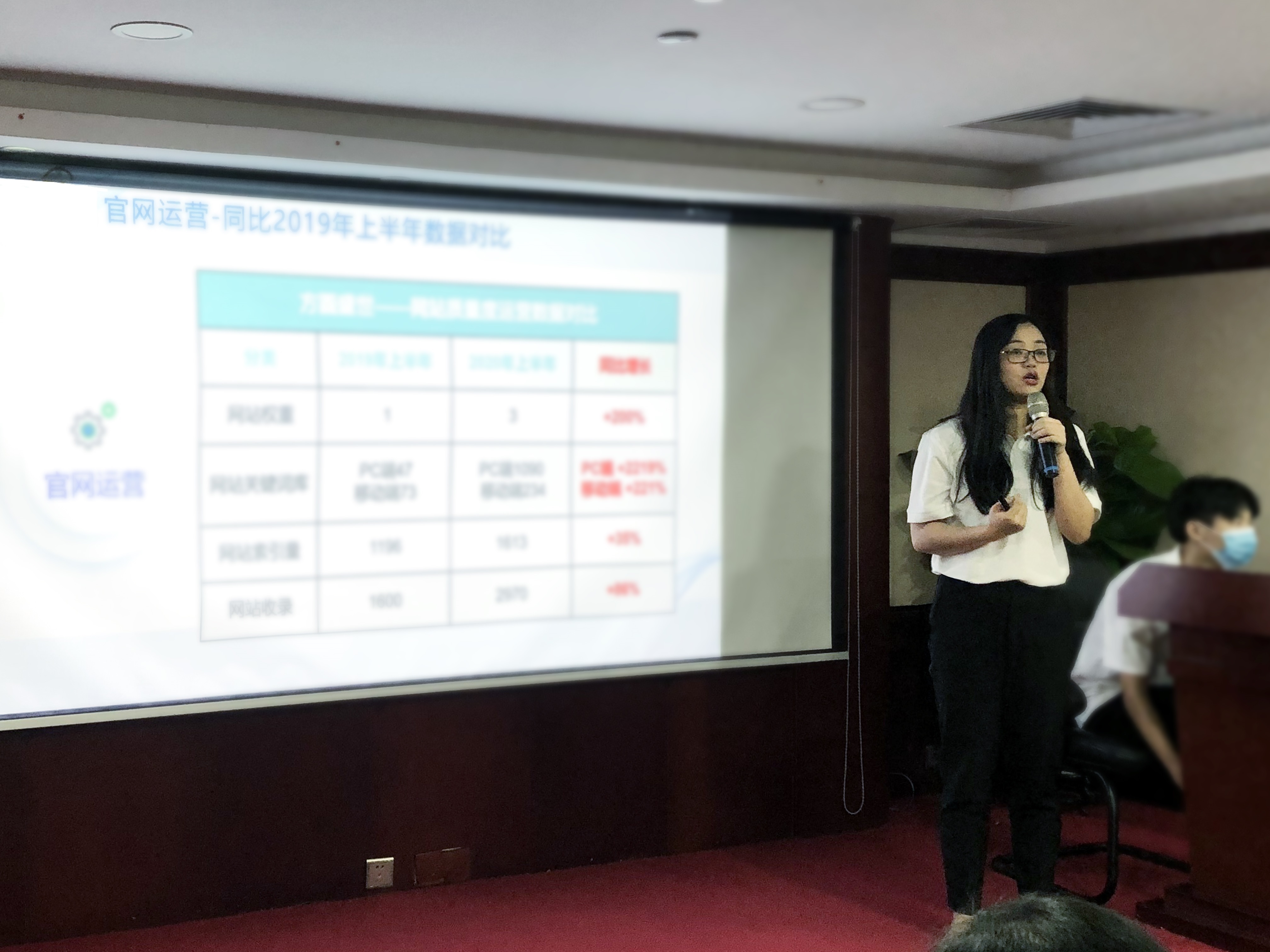 会议首先由各部门负责人对本部门在2020年度上半年的工作进行了总结性汇报。他们用内容精简的PPT、直观的数据、务实的语言,对本部门的职责及个人开展的核心工作进行了深刻的分析和自我总结。并对下半年工作计划进行了详细的制定,确保下半年工作有质和量的跨越,势必达成年度制定的总目标计划。