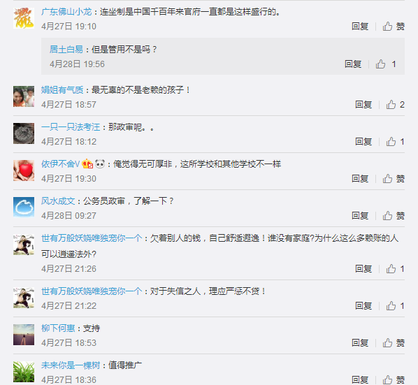 各省市的中考和高考成绩已经陆续公布,几家欢喜几家愁,但不管怎样,只要曾经努力过,就不会留有遗憾。然而,山东省潍坊市昌乐县的这些孩子,却早在中考之前,就已被学校拒之门外,三年时光的不懈努力,转瞬间全部付诸东流。据报道,山东省昌乐二中近日在其官方网站上发布了《山东省昌乐二中2018年高中招生录取工作实施方案》(以下简称《招生简章》)。该招生简章的报名要求是:(1)报名考生必须保证本人是应届初中毕业生。(2)报名考生家长必须无失信记录。身为省级示范高中,当地重点学校,昌乐二中的此篇招生简章一经发布,就在学生和家长之间炸开了锅,网友也是议论纷纷,有赞同、有反对、有唏嘘、有愤懑,叫好叫骂声不绝!面对种种社会舆论,学校出面回应,此次招生政策是依据山东省教育厅、潍坊市委市政府相关规定,以及根据潍坊市委市政府出台的《关于建立失信联合惩戒制度加快推进社会诚信建设的意见》定制的,其中明确写道:“对有失信记录者,限制其子女就读高收费私立学校。”要知道,当地有多少初中生是奔着这所重点高中而努力的,却因为家长的过错遭到“连坐”,所有努力化为泡影,真的合理么?网友A:这个招生政策三观很正呀!失信的家长,又能把孩子教育的多好?通过这种方式,为孩子建立正确的人生价值观,虽然有点残酷,又何尝不是好事一桩?网友B:一人做事一人当,祸不及家人,更何况是还未成年的孩子了,显然偏离了教育公平的基本原则,不可取呀!网友C:有啥可激动的,又没剥夺孩子接受教育的权利,只不过限制读“高收费的私立学校”,凭什么拿别人的钱养活你的小孩上贵族学校,别人的子女不要上学吗?几乎一大半的评论都是支持昌乐二中做法的,看来大家对失信者已达到深恶痛绝的地步,也有不少人曾经遭受过“老赖”的欺骗和伤害,提及“老赖”就得牙痒痒。不过小编认为,以恶制恶,只会拉低社会道德水准,严惩失信者本人是必须的,但是拿无辜的孩子开刀,就有些说不过去了。成为失信者,除了孩子上学会受到限制,还有哪些方面会受到限制呢?为大力推动完善“一处失信、处处受限”格局,落实中办、国办《关于加快推进失信被执行人信用监督、警示和惩戒机制建设的意见》,对于失信人员,采取147项惩戒措施,小编重点整理了12项:1.任职资格限制2.准入资格限制3.政府支持或补贴限制4.从事特定行业或项目限制5.荣誉和授信限制6.特珠市场交易限制7.限制高消费及冻结、处置财产8.协助查询、控制及出境限制9.加强日常监督检查10.加大刑事惩戒力度11.鼓励其他方面限制12.加大党政机关支持力度日常生活来说,就是上了失信黑名单,你可能坐不了火车,上不了高速,借不到贷款,用不了支付宝,还要牵连自己的孩子家人。由此可见,对于失信人员的惩罚力度之大,真可谓是失信者寸步难行。不得不说,“道高一尺,法高一杖”,颤抖吧,老赖们!